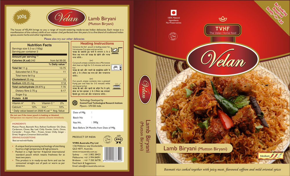 TTE SOUHT AFRICA takes the pride to introduce our Ready to Eat Non-Vegetarian Indian meals under the brand name ‘VELAN HOME FOOD’ which have an amazing combination of taste, variety and convenience. All our Ready To Eat Non-Vegetarian Indian meals are 100% natural and have absolutely no preservatives. They are all 100% Halal Certified.